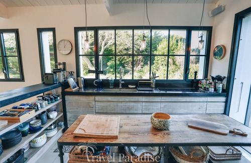 Welcome to Le Petit Marchais, a haven of peace facing the ocean.Located in Portes-en-Ré, in a preserved natural environment, the Petit Marchais villa opens its doors to you for a unique experience combining modernity, elegance and authenticity. This exceptional residence elegantly combines the charm of exposed stonework and high-end facilities, offering an ideal setting for rejuvenation.The villa is composed of multiple living spaces, including a main house with 4 bedrooms, and a very spacious exterior with a relaxation pool area, a summer kitchen corner, and a terrace overlooking the sea.Located on a closed plot of 7,000 m², with no overlooking neighbours, the villa offers direct access to the beach. Enjoy an unobstructed view of the sea from the main bedroom and from the seafront terrace.The heated outdoor swimming pool, its pool house, and its petanque court promise privileged moments of relaxation.Villa's strengths:- Breakfast delivery- One adult bicycle per person (with assistance across the island if necessary; children's bikes and electric bikes available for an additional fee)- Private and secure bicycle parkingWhether you are seeking serenity or adventure, Petit Marchais is the promise of an exceptional stay, where luxury and nature meet in perfect harmony.Please note:Pets are not permitted in this villa.Household linen is optional at €25/person and includes: Bed linen / bath towels / kitchen linen / beach foutas