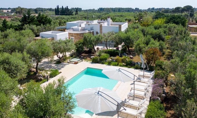 Best-rates for the Ugento villa starts from $896 per night with includes Fireplace/Heating, Internet, Pool, TV, Child Friendly, Kitchen, Parking, Pet Friendly, Private Pool, Balcony/Terrace, Security/Safety, Wellness Facilities, Laundry, Air Conditioner, Bedding/Linens with all other amenities. Perfect for Weddings is committed to ensuring every guest experiences a comfortable and extraordinary stay, whether planning a romantic getaway, a honeymoon, a pet-friendly stay, or celebrating with the entire wedding party.