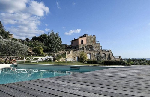 Villa Pietrina is an elegant and welcoming three-story ancient watch tower surrounded by the greenery. It sleeps 12 people. From Villa Pietrina you will enjoy a fascinating view of the greenery and of the hills. Villa Pietrina is 270 square meters (2900 square feet). It features a private swimming pool, private terraces, a private garden, air conditioning (please read description below to check in which rooms the units are installed), winter heating and WI-FI Internet access.