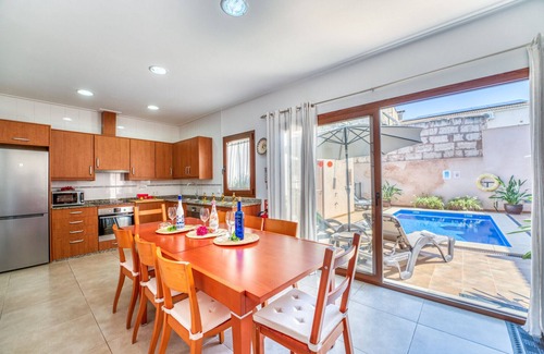 Charming house in Mallorca for 10 people with private pool in a privileged location in a quiet area and just a few minutes by car from Alcudia beach.The villa features a spacious terrace with a pool where you can cool off on sunny days, while its comfortable loungers invite you to relax under the sun and enjoy the calm that can be felt on the property. You will be able to enjoy outdoor meals thanks to its table for 10 people and cook on the barbecue.On the ground floor of the house you will find a spacious fully equipped kitchen with direct access to the terrace, perfect for preparing all kinds of dishes with comfort. A cozy living room invites you to relax watching television or sharing pleasant family conversations. On this same floor is located a bedroom with two single beds and built-in wardrobe, with direct access to the terrace, as well as a full bathroom with shower and access to the villa's private parking, which has an interior and an exterior parking space.The first floor is designed to offer maximum comfort to all guests. It has two bedrooms with double beds, one of them with an en-suite bathroom and access to a small private terrace, ideal for enjoying the fresh morning air. The other two bedrooms have single beds, and one of them also has access to the terrace. On this floor, you will find another additional bathroom, ensuring comfort and functionality for all members of the group.The villa is located in the town of Sa Pobla, a place with a lot of life throughout the year. Every Sunday a great weekly market is held where you can buy fresh and local products, while surrounded by the authentic atmosphere of the town and its people. A short distance away you will find restaurants, bars, shops and supermarkets, everything necessary for a comfortable and complete stay. The most beautiful beaches in northern Mallorca are just 15 minutes by car, while in 10 minutes you can discover the serenity of the mountain.This villa in Sa Pobla is the perfect choice for those looking for a quiet, relaxed, and private vacation in an authentic and well-connected area of Mallorca. With space for large groups, pool, barbecue, and all the necessary amenities, it becomes the ideal accommodation to live unforgettable days on the island. Do not miss the opportunity to book this spectacular villa and enjoy the true Mediterranean spirit in a charming town.Please note that for the gardener to be able to maintain the pool and garden for your absolute enjoyment of the facilities during your stay, he must enter through the house. If desired, an appointment can be arranged to make it as comfortable as possible for the guests.The eco-tax is not included in the price and must be paid before arrival.ETV/9434ESFCTU00000703000038882500000000000000000000ETV/94340
