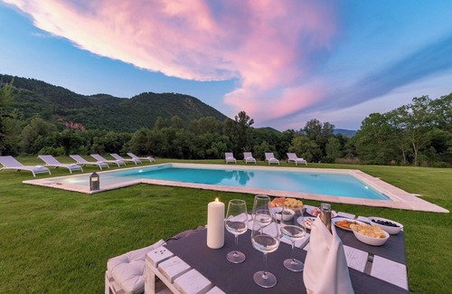 Best-rates for the Cagli villa starts from $748 per night with includes Security/Safety, Entertainment, Laundry, Parking, Sports/Activities, Internet, Kitchen, Air Conditioner, Private Pool, Balcony/Terrace, Bedding/Linens, Fireplace/Heating, Child Friendly, Pool, Wellness Facilities, Pet Friendly, TV with all other amenities. Perfect for Weddings is committed to ensuring every guest experiences a comfortable and extraordinary stay, whether planning a romantic getaway, a honeymoon, a pet-friendly stay, or celebrating with the entire wedding party.