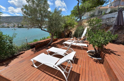 A spacious elevated wooden deck terrace just 10 steps above the sea provides sea views privacy and relaxation.
