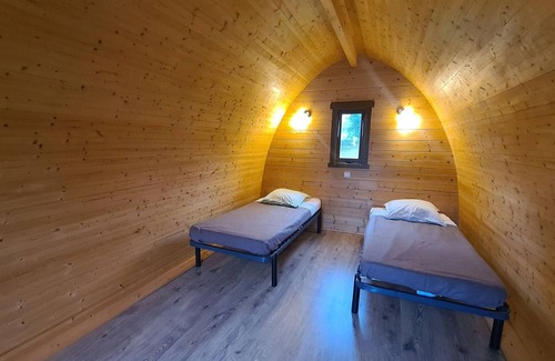 In Berry and near the Creuse, the Ligny campsite is located next to the nautical base where you can practice water skiing and wakeboarding Cabin with a living room and two single beds. Outside there is a terrace with garden furniture and a parasol. On the campsite you will find collective toilets, a collective kitchen with sinks and a refrigerator, collective barbecues and camping tables. There is also a location for your vehicle. Unless stated, services such as cleaning, bed linen, towels etc. are not included in the price of this rental. If pets are allowed (information in the advertisement), charges may be applicable. Only equipment mentioned in this advertisement are present. Equipment not mentioned are not considered to be present.
