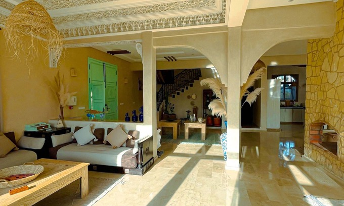 Located in Sidi Kaouki, this 7-bedroom, 5-bathroom vacation home lets you experience it all. Fans of nature and the outdoors will love being 18 minutes by car from Sidi Kaouki Beach and 23 minutes from Essaouira Beach. You'll easily make the 13-minute drive to Essaouira Mogador Golf Course or the 19-minute drive to Place Moulay el Hassan.