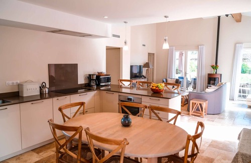 Its terrace will allow you to organize pleasant meals outside. You will be able to enjoy its private heated swimming pool in complete freedom. It is secured by a roller shutter and is equipped with sunbeds and parasols.