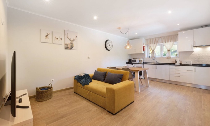 Located in Gradil, the villa Quinta Vitae has everything you need for a relaxing holiday. The 50 m² property consists of a living room with a sofa bed for 2 people, a well-equipped kitchen, 2 bedrooms and 1 bathroom and can therefore accommodate 6 people. Additional amenities include high-speed Wi-Fi (suitable for video calls), heating, a TV as well as a washing machine. A baby cot and a baby bed are available upon request.
