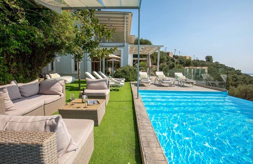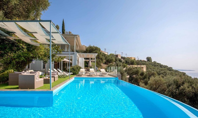 Built on a private hillside, Villa Rana is an elegant and modern property located in Corfu, Greece. Boasting panoramic views over the Ionian Sea, the island is well known for its sandy beaches and beautiful landscapes which are just a short walk away from this impressive villa. Additionally, a supermarket, taxi boat, water sports, and taverna restaurants are also nearby.
