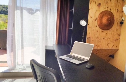 Air-conditioned Studio with private terrace tropézienne comfortably equipped (large shower, washing machine, equipped kitchen, high-speed WiFi, smart TV, etc.) on the 1st floor with free parking 50 m away.