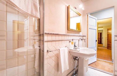 The villa 'Relais Ponzano' near Cinque Terre is located in Ponzano Superiore and impresses guests with its view of the sea. The 2-storey property consists of a living room, a well-equipped kitchen with a dishwasher, 3 bedrooms and 6 bathrooms and can therefore accommodate 6 people. The villa also features Wi-Fi (which might become unstable under adverse weather conditions) air conditioning, a washing machine as well as satellite TV. Floors and furniture are very luxurious and require care from guests. Children are allowed.