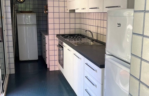The kitchen is equipped with an oven, a stovetop, and a refrigerator, as well as an electric kettle and cookware. Bathroom amenities include a hair dryer, a bidet, and towels. And there's access to laundry facilities, so you can even pack a bit lighter. Other amenities include a living room, bed sheets, an ironing board, and heating.