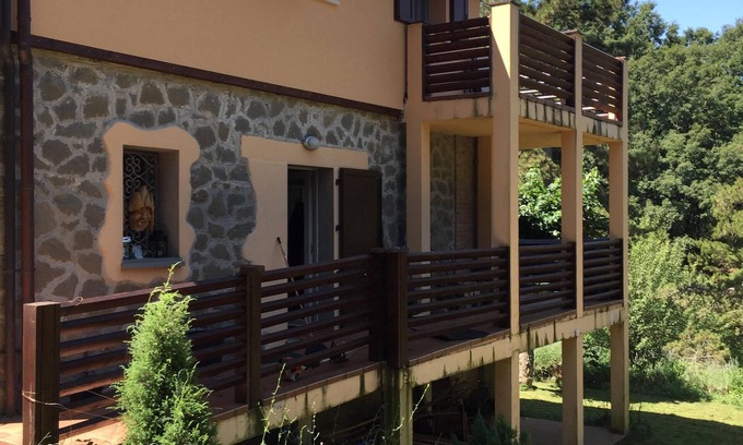 For groups of people over 8 there is the possibility of camping with own tent in the lawn surrounding the house using the basement bathroom with private entrance. The village of Perticara 1 km from the house has supermarket shops bars and the mine shop sells fantastic meat for the barbecue. Nearby there is a Sky parck with very fun tree paths then trails for Mountinbike and three bicycles available for guests, possibility of freecliming.