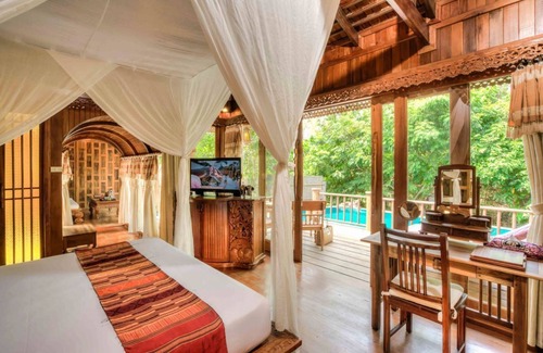 Nestled amidst a rock garden in the heart of wild tropical surroundings, Villa Rinrada at Santhiya offers an unparalleled retreat. This secluded sanctuary promises an unforgettable experience with its own private pool, providing the ultimate romantic escape. Perched on a hill, each villa boasts a unique charm, offering stunning garden views and an atmosphere of serene privacy. The villa features a spacious 115 sq.m. stand-alone layout, complete with a double bedroom, separate living area, day bed, and sunbeds, making it an idyllic haven for relaxation.