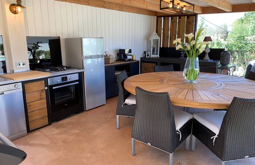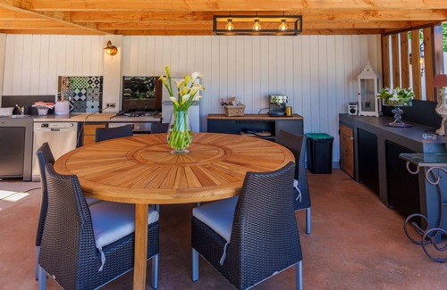 - Fully equipped summer kitchen (dishwasher, fridge, oven, hob, BBQ, dining area...)