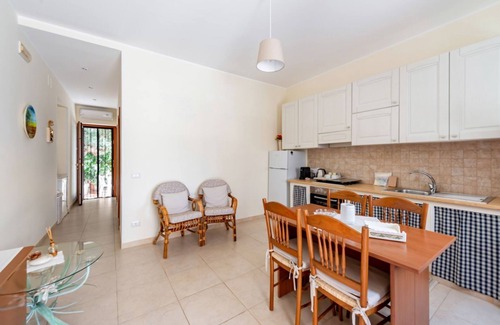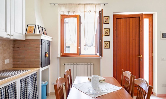 Inside, Villa Rosa opens onto a bright living area that also serves as a dining area. This environment is perfectly integrated with a delightful kitchenette, equipped with everything you need to prepare tasty and genuine meals. The décor wisely combines traditional and modern elements, creating a warm and welcoming atmosphere, ideal for relaxing after a day of exploration.