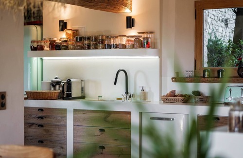 Discover this magnificent 5-bedroom stone house, designed as a hamlet with its covered street and chapel, offering a spacious living room and friendly kitchen, all nestled in 4000 m² of south-facing grounds. This villa sleeps 10 (2 more possible on request) and features natural stone and light-coloured wood.