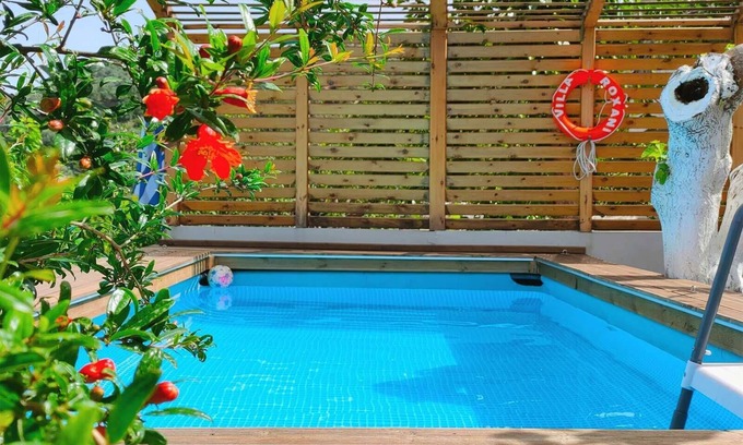 The lovely courtyard of the villa offers a private pool of about 18 sq m with sun loungers, an outdoor kitchen with barbecue, wood oven and an outdoor dining area. Free wireless internet, air condition units in both bedrooms and physical cooling is provided by the traditional type of the house (big walls), making the temperature up to 25 Celsius during daytime during summer. Hot water by solar energy, washing machine, iron and hairdryer are also offered.