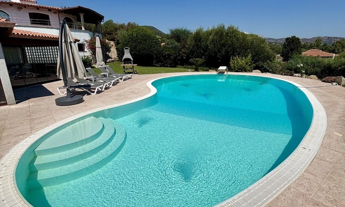 The villa features a private outdoor area with a pool, garden, 2 open terraces, 2 covered terraces, barbecue and outdoor shower. The nearest sandy beach (La Cinta) is a 5-minute drive away (3.1 km), and many other beaches are easily accessible along the coast. In the vicinity you will find 4 restaurants and 2 bars (less than 20 minutes on foot). The center of San Teodoro, with more bars, restaurants and venues, is 2.5 km away and can be reached in about 30 minutes on foot or 5 minutes by car. The nearest supermarket is a 3-minute drive away (1.4 km).