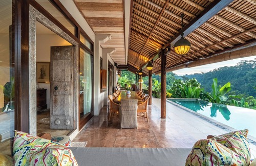 Villa Sagitta is about peace, relaxation and serenity. It is positioned at the top of a river gorge, in a UNESCO World Heritage site. There are magnificent views across the indigenous Balinese forest.