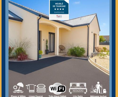 Featuring a garden, Villa Saint Mart, Saint Martin de Bréhal, 500m de la mer provides accommodations in Saint Martin de Brehal. This apartment features accommodations with a terrace. Free Wifi is available throughout the property and Bréhal Beach is a 7-minute walk away. The apartment consists of 3 bedrooms, a living room, a fully equipped kitchen with a dishwasher and a coffee machine, and 2 bathrooms with a shower and a hair dryer. Towels and bed linen are offered in the apartment. The property has an outdoor dining area. Museum of Modern Art Richard Anacreon is 6.4 miles from the apartment, while Granville Train Station is 7.3 miles from the property.