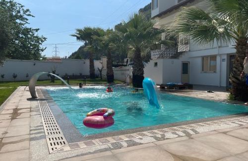 Villa Salo offers accommodations in Labinot-Fushë, 28 miles from Skanderbeg Square and 29 miles from Dajti Ekspres “Cable Car”. This property offers access to a balcony and free private parking. The villa provides a seasonal outdoor pool and a 24-hour front desk. Providing a terrace and mountain views, the spacious villa includes 4 bedrooms, 2 living rooms, satellite flat-screen TV, an equipped kitchen, and 3 bathrooms with a walk-in shower and a bidet. The comfortable, air-conditioned accommodation also comes with soundproofing and a fireplace. The villa offers bed linen, towels, and ironing service. There is a garden with a barbecue at this property, and guests can go fishing nearby. Former Residence of Enver Hoxha is 27 miles from the villa, while Grand Park of Tirana is 27 miles away. Tirana International Mother Teresa Airport is 35 miles from the property.