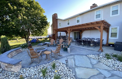 I’m so excited to let you know we just completed a beautiful outdoor kitchen & outdoor game area ! We have a large bar with built in frig & grill ...beautiful large stone dining table ..pergola ..fire pit...Bocci Ball court ..corn hole game..horse shoes ....croquet...& more . We also have a screened in gazebo outside!!its truly heaven on earth and sooo peaceful.