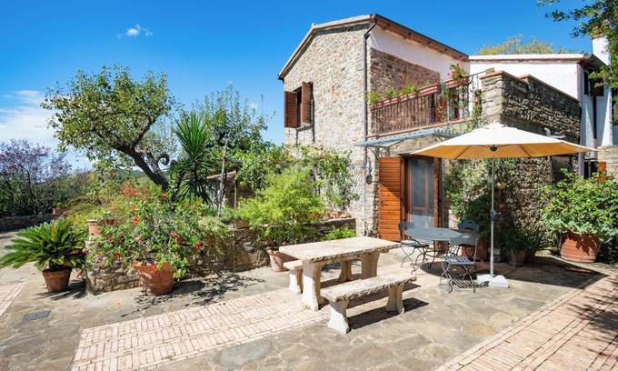 You will find the villa at the end of a quiet lane on a hillside, surrounded only by lush greenery. The property comprises the main villa, which is a 2-storey farmhouse, and an additional two outbuildings. In total, the home can accommodate up to 15 guests, making it perfect for a trip with a larger group.