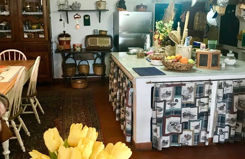 The villa, independent, is cozy and refined, expertly furnished with objects of peasant culture.