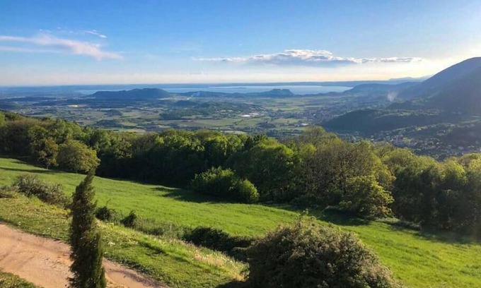 It is located on the hills in the hinterland of Lake Garda, just above the town of Caprino Veronese, the spaces are large and well-kept both inside and outside and from the large terraces you can enjoy a magnificent view of Mount Baldo and the valley below with Lake Garda in the distance.