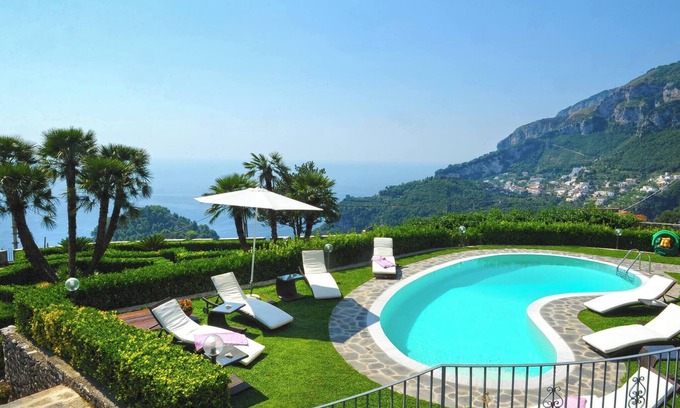 The house in Scala has 5 bedrooms and has capacity for 10 people. The house is 220 m². The accommodation is equipped with the following items: garden, garden furniture, fenced garden, terrace, washing machine, barbecue, internet (Wi-Fi), hair dryer, balcony, private swimming pool, 1 TV.In the gas independent kitchen, refrigerator, microwave, oven, freezer, dishwasher, dishes/cutlery, kitchen utensils, coffee machine and hob are provided.Capacity 10 | Sqm 250 | Bedrooms 5 | Bathrooms 7 | Terraces 250 Sqm | Garden 1000 Sqm | Swimming pool 8 Mt x 4 Mt | Pets Not allowed | Beach 5 Km | Train Station 28 Km | Airport 75 Km | Bus stop 1 kmVilla Orizzonte is a magnificent villa located in the small village of Scala di Ravello, on a promontory facing the famous town of Ravello. It offers a privileged view of the beautiful coastal villages of Amalfi, Atrani, and Maiori. The breathtaking views of the sea and the coast, along with the delightful gardens that surround the property in a natural setting, are the main features of this exclusive villa.Villa Orizzonte consists of three independent buildings arranged as follows:Main building: starting with a spacious and luxurious living room furnished with a fireplace and a beautifully restored table seating up to 20 people. The living room is equipped with satellite TV, a CD player, and internet access. Fully equipped kitchen, 4 bedrooms, all with double beds (one bedroom has a crib (sleeps 6-8). All rooms have a private bathroom with shower, TV, air conditioning and heating, and a laundry room.An annex: accessible from the outside, it features a French bed (two single beds).Villa Orizzonte offers its guests the luxury of enjoying the comfort of both its spacious interiors and exteriors; it is surrounded by a garden of approximately 1,000 square meters and three terraces, one of which is equipped with a solarium, a wood-burning oven, and a barbecue, offering splendid views of the sea and the coast.Villa Orizzonte can host events and ceremonies for up to 60 people, with the possibility of overnight stays for up to 12 people. Guests of the villa can easily reach the centers of Scala and Ravello, where they can find all public services. The most interesting sites of the Amalfi Coast, such as Amalfi, Positano, and Maiori, can be reached by car/bus or Using the ferry connections available from the ports of Amalfi, Positano, and Minori.The villa is not recommended for guests with disabilities due to the steps (102 steps) required to reach the villa.Naples Airport: 80 minutes by carPompeii: 50 minutes by carPositano: 60 minutes by carAmalfi: 20 minutes by carAtrani or Amalfi Beaches: 20 minutes by car Traffic permitting-Ravello: 5-10 minutes by car or 25 minutes walkingRestaurants and Groceries: A few minutes by car or a 10-minute walkPrices include: air conditioning and electricity up to 300Kwatt (extra consumption will be paid at EUR0,60/Kwatt), bed linen, bath and pool towel, maid cleaning (4days/week, 2 hrs/day)Pool opening: from April until end of October (weather condition permetting)Extra cost to be paid locally in cash on arrival:Damage deposit: EUR 800Final cleaning: EUR300Local tourist tax: EUR1,50 per person, per nightOn request, we can provide following services at the extra costs as mentioned below:Baby crib: EUR 15 per dayExtra bed: EUR65 per day (max2 extra beds)Maid service: EUR 15 per hourChange of bed linen and bath towel: EUR 25 per each roomWood for fireplace: EUR 50 per quintal(2 lb)Heating: EUR 4/m3Porter Service: EUR10 per luggage, one wayParking space: is provided in a private parking lot at about 1,5km from the villa- EUR 30-40 per day(depends on car size) and includes valet service.On request, we can host events and small wedding (up to 40 people) as the extra fee of EUR3500