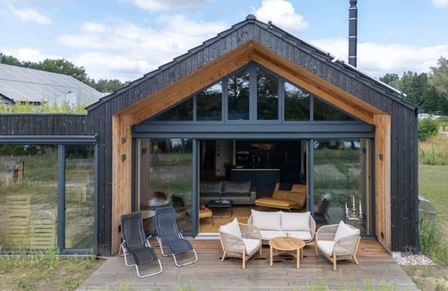 The vacation home is self-sufficient in terms of energy and is powered by solar energy. The central, light-flooded main room, which combines cooking, dining and living, offers a fantastic view of the beautiful Großer Zechliner See lake. The sauna with its large panoramic window is a place of absolute relaxation. The lake invites you to cool off after every sauna session.