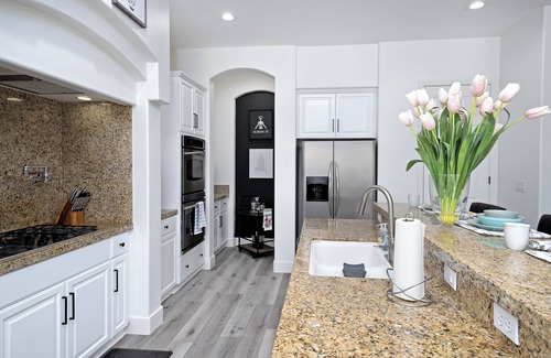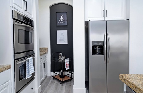 Cook up breakfast, lunch, or a 3-course dinner within the gourmet chef's kitchen that offers high-end appliances and plenty of space for entertaining. There is a full-size fridge/freezer with a water and ice dispenser, a double wall oven, a microwave, a gas burner stovetop, and a dishwasher to take care of all the dishes.