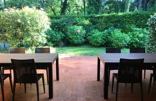 Self-catering Sibel villa is located in the Versilia greenbelt on the Tuscany. 's north coast, 500 meters from the sea. 220 sqm, ground floor, surrounded by 1,400 sqm garden with private pool 11 x 5 m, greenery and trees. Quiet and peaceful, just fifteen minutes 'walk from the beach and twenty minutes' bike ride from the largest resort Forte dei Marmi, the villa has easy access to all amenities, golf course, tennis grounds, horse riding, sailing, thermal center, local markets and shopping, and many excellent restaurants for eating out. You will enjoy going by bike in the small streets of the village, in the middle of a pine trees forest.