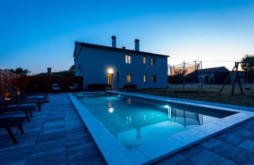 Providing a garden, Villa Slivari features accommodations in Nedeščina. This property offers access to a terrace and free private parking. Cathedral St. Eufemia Rovinj is 30 miles away and Pazin Castle is 13 miles from the vacation home. With free Wifi, this 6-bedroom vacation home provides a satellite flat-screen TV, a washing machine, and a fully equipped kitchen with a dishwasher and oven. Guests can enjoy a meal on an outdoor dining area while overlooking the mountain views. The accommodation is non-smoking. In addition to a seasonal outdoor pool, the vacation home also offers a children's playground. Morosini-Grimani Castle is 19 miles from Villa Slivari, while Dvigrad Castle is 20 miles away. Pula Airport is 31 miles from the property.