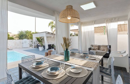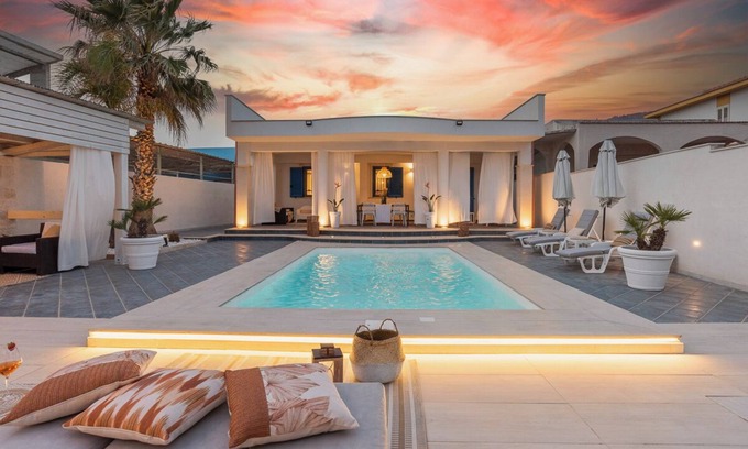 Choose to spend a luxury holiday in Sicily at Villa Soave, a few steps from the sea, welcomed by its Mediterranean style and modern comforts. Villa Soave is all this and much more. Located in Santa Maria del Focallo, just 100 meters from the beach, this splendid villa with private pool is ideal for families and groups of friends who wish to spend an unforgettable holiday in Sicily. Villa Soave is also pet-friendly, so your four-legged friends are welcome!