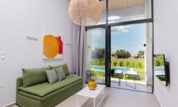 Villa Sofia is a stylish 1-bedroom, 2-floor retreat with a shared pool, a private veranda, and a modern kitchen. Perfect for up to 4 guests, it offers a peaceful escape just minutes from the sea.
