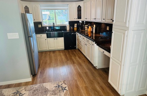 Welcome to this delightful house with Private Heated Pool. BBQ and WIFI. Toys for kids and adults. This superb property features 2 cozy bedrooms and an open space 3rd room with 1 king bed and 2 queen beds, perfect for a relaxing stay. Garage converted to private office with TV and AC. Enjoy the convenience of amenities like heating, WiFi, a hair dryer, and a washing machine. With 2 bathrooms equipped with all the essentials, your comfort is our priority. We're happy to assist with any questions while you stay at our house. If pool heater/chiller is used there is an additional $25 daily fee.