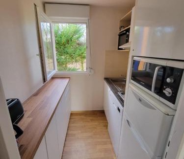 With Plage du lac marin reachable in a 15-minute walk, Villa Soustons Plage / Résidence les villas du lac avec piscine features accommodations, a restaurant, a seasonal outdoor swimming pool, a garden, and a bar. This property offers access to a terrace and free private parking. The accommodation offers full-day security and bicycle parking for guests. With free Wifi, this 2-bedroom villa provides a flat-screen TV and a kitchenette with a dishwasher and oven. Guests can enjoy a meal on an outdoor dining area while overlooking the quiet street views. The accommodation is non-smoking. You can play table tennis, mini-golf, and tennis at the villa, and bike rental is available. Kids pool is also available for guests at Villa Soustons Plage / Résidence les villas du lac avec piscine. Soustons Beach is 1.2 miles from the accommodation, while Sablères Beach is 1.4 miles away. Biarritz Airport is 29 miles from the property.