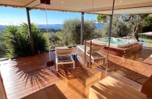 Villa & Spa Mas des Oliviers: Heated swimming pool, Jacuzzi, Sauna, steam room is located in Chateauneuf-Grasse. Villa & Spa Mas des Oliviers: Heated swimming pool, Jacuzzi, Sauna, steam room provides accommodation, featuring Parking, View, Ocean View, among other amenities. This Villa features Parking, View, Ocean View, to make your stay a comfortable one.