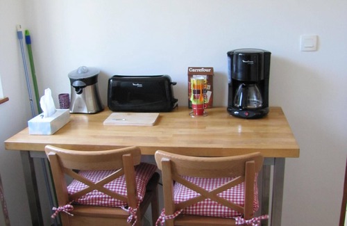 Fully equipped kitchen (ceramic hob, fridge, dishwasher, washing machine, oven, microwave oven, toaster, kettle ...). TV with Free Wi-Fi & international phone illimited, BBQ, bed sheet, bath towel ...
