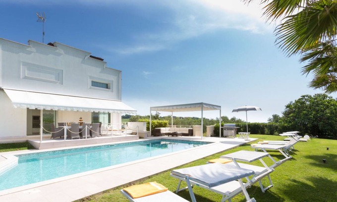 Best-rates for the Misano Adriatico villa starts from $1,227 per night with includes Air Conditioner, Private Pool, Bedding/Linens, Entertainment, Internet, Kitchen, Pool, Parking, Security/Safety, Wellness Facilities, Fireplace/Heating, Laundry, Pet Friendly, TV, Balcony/Terrace, Barbecue/Outdoor Cooking, Child Friendly with all other amenities. Perfect for Weddings is committed to ensuring every guest experiences a comfortable and extraordinary stay, whether planning a romantic getaway, a honeymoon, a pet-friendly stay, or celebrating with the entire wedding party.