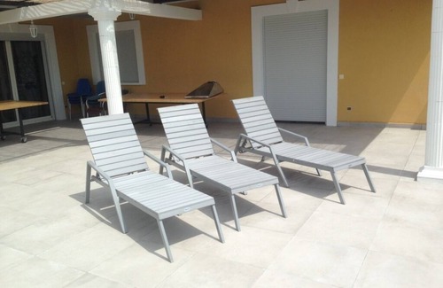 1 outdoor terrace of 100m ² with a set table, chair, plancha gas, sunbathing, ping-pong table, 1 set projector for outdoor lighting, 1 spread for jersey etc ..