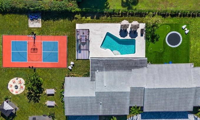 This spacious 8-bedroom 4-bathroom oasis offers everything you need for the ultimate getaway. Indoors, enjoy a modern kitchen, game room, and cozy living area with a large TV, plus a huge dining area and pool table. Step outside to discover your private paradise—BBQ terrace, lounging areas, pool with sun loungers, mini golf, basketball/pickleball courts, in-ground trampoline, hammocks, hot tub, sauna, massage chairs, and a fire pit. Book now for the perfect mix of relaxation and adventure! :)