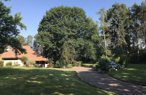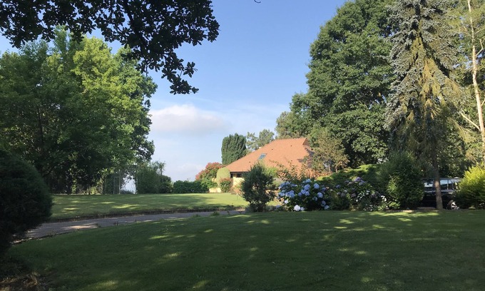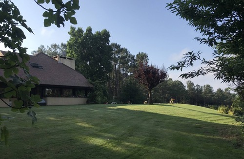Comfortable villa with a fabulous panorama of the Pyrenees, su 3 hectares of land. Landscaped park of high quality. 2 kms from the city. Near Biarritz (70 km and Pau 40 km) rest and calm guaranteed. No overlooked, walks in the woods, country roads all around circuit for cycling and jogging. 12x6 pool. Tennis.