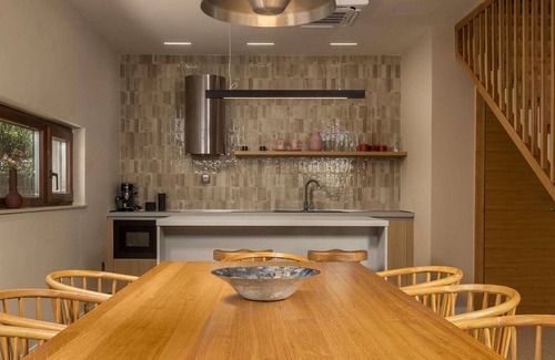 On the outdoor terrace there is a heated swimming pool with a size of 32 m2 and a depth of 1.2 - 1.8 m. You will sunbathe on 4 sunbeds, and you will not have to prepare food only inside the villa, but also on the terrace where there is an outdoor charcoal or wood grill. Of course, in the evenings you will be able to enjoy hanging out on the terrace on the outdoor sofa or at the outdoor dining table with 6 seats.