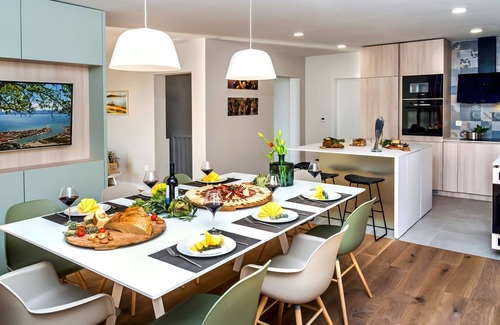 Picture yourself chilling, laughing and indulging in delicious Croatian food prepared on the available Grill. Other highlights include: Heating, Air Conditioning, Television, Internet, Safe, Baby crib, Iron, Washing machine. Parking is also available at your Disposal.