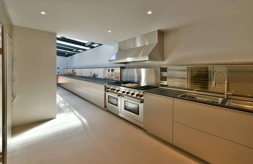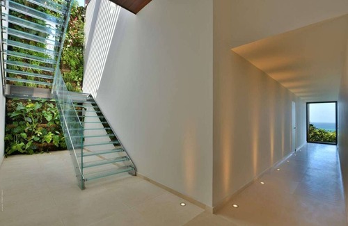 The luxury Villa Thelma in St. Barths consists of four air-conditioned bedrooms with en-suite bathrooms. They are all spacious and equipped with king-size beds, sitting areas and private terraces. Materials such as wood, pink marble and velvety fabrics make this place a luxurious and most comfy home. Two bedrooms are located on the main level and open onto the terrace and the pool, while the other two are on the lower level, and can be accessed through a beautiful glass staircase. Sports lovers will enjoy the air-conditioned fitness room.