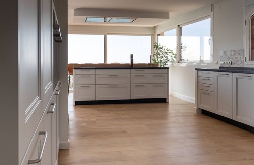 The villa has seven completely new bedrooms, each with an also new modern ensuite bathroom. There are two fully equipped kitchens, of which the kitchen on the main floor can be called enormous. Double dishwasher, double oven etc. The poolside kitchen is very practical for eating and drinking around the pool. The 500m2 villa has three floors that are connected by a staircase and elevator. The villa is perfectly suited for three-generation or befriended families.