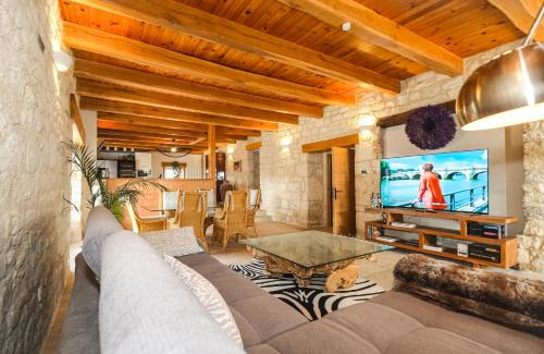 Offering a garden, Villa Thun - Piscine - Maison de caractère au milieu des vignes offers accommodations in La Celle-sous-Gouzon. This property offers a private pool, free Wifi, and free private parking. The property features barbecue facilities and outdoor furniture. Featuring a terrace with pool views, this vacation home also comes with a flat-screen TV, a well-equipped kitchen with a dishwasher, an oven, and a microwave, as well as 5 bathrooms with a shower and a hair dryer. There's also a seating area and a fireplace. Toulouse-Lautrec Museum is 16 miles from the vacation home, while Albi Cathedral is 17 miles from the property. Castres-Mazamet Airport is 46 miles away.