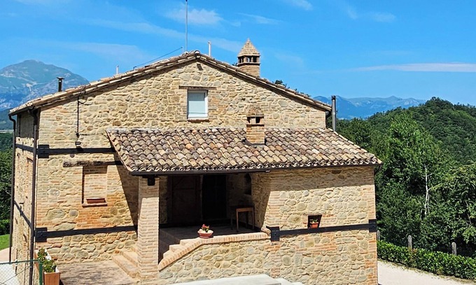 Nestled in the rolling hills of the Italian countryside, in the heart of a sprawling estate renowned for its exquisite black truffles, this charming stone villa exudes timeless elegance and serene beauty. As you step out into the backyard, you're surrounded by a breathtaking view of wooded hills and the peaks of the Sibylline Mountains. The villa offers a perfect escape from the hustle and bustle of modern life, allowing you to bask in the simple pleasures of nature and enjoy the unparalleled peace of the Italian countryside.