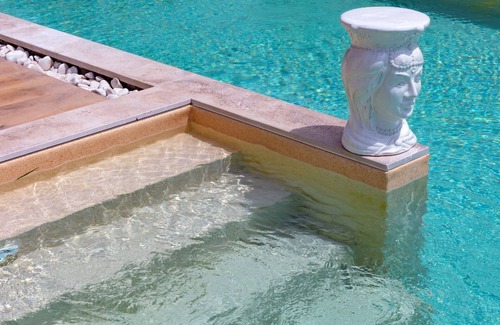 Yes, this Grottelle villa has a swimming pool. Check the Facility Overview section for details about the pool and other available facilities.